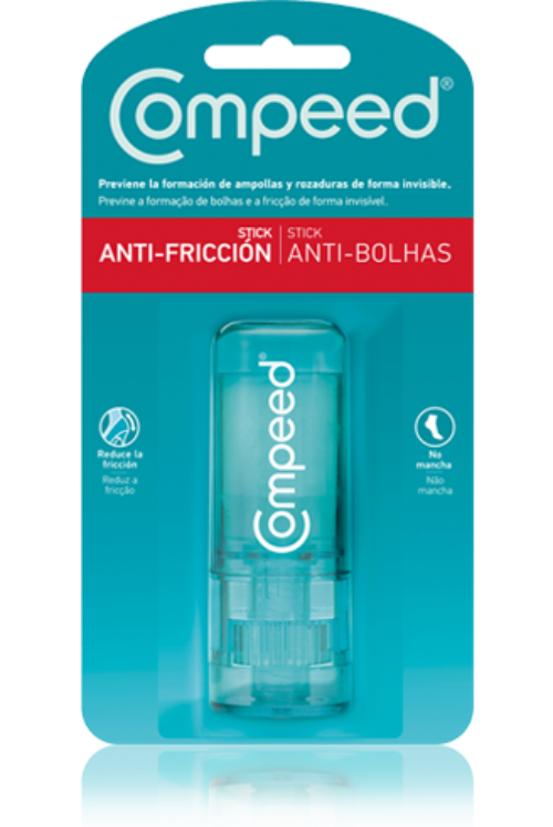 Compeed® Stick Anti-fricción previene eficazmente la fricción y la formación de ampollas. Eficacia probada: evita la formación de ampollas y rozaduras en los pies en nueve de cada diez consumidores.