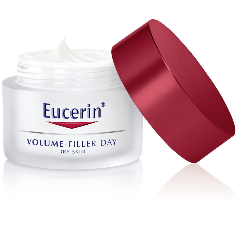 Eucerin Volume-Filler Crema de día piel seca, con tres ingredientes activos que actúan sobre cada una de las capas de la piel, se ha formulado especialmente para la piel que requiere una hidratación adicional y que está experimentando una pérdida de volumen, de definición, o que presenta flacidez. En su actuación combinada, el magnolol de origen natural aumenta el tamaño y el número de las células que aportan volumen, mientras que los oligopéptidos mejoran la renovación del colágeno. El ácido hialurónico también mejora la hidratación para lograr una superficie de la piel lisa y más consistente. Tiene un FPS 15 con un sistema de filtros UVA para actuar como protección frente al envejecimiento inducido por el sol. Libre de parabenos y de colorantes artificiales para obtener una buena tolerabilidad dérmica.