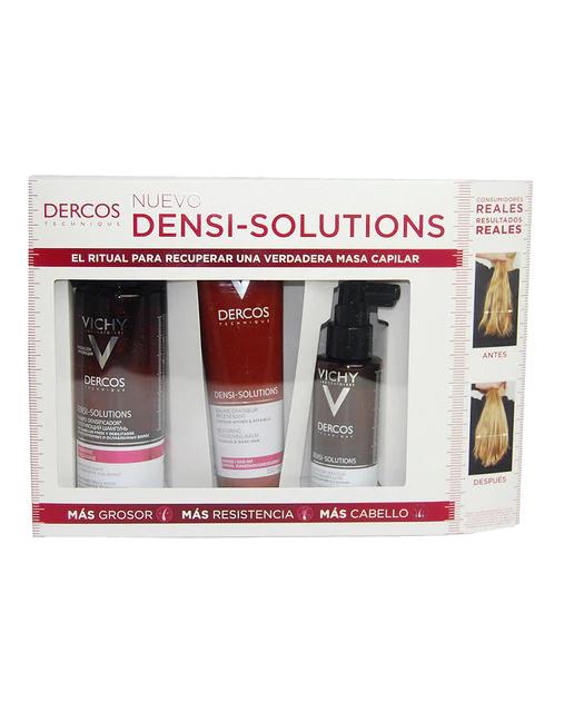 El Pack Tratamiento anticaída Ritual Densi Solutions de Vichy incluye: Champú Dercos Densi-Solutions 250 ml, Acondicionador Dercos Densi-Solutions 150 ml y Loción Dercos Densi-Solutions 100 ml. Dercos Densi-Solutions es la nueva fórmula diseñada para recuperar el grosor, la resistencia y la densidad del cabello de la mujer tras 6 semanas de tratamiento. Este pack estará disponible próximamente para su compra en tu farmacia online de confianza, junto a otros productos de Vichy. Vichy, y en particular la gama Dercos, está en constante evolución para encontrar fórmulas que se adapten a las necesidades del cabello. Después del éxito de los productos Aminexil y Neogenic, que están destinados a la caída del cabello, Vichy se centra ahora en recuperar el volumen, densidad, grosor y resistencia del cabello de la mujer con una nueva fórmula: Vichy Dercos Densi-Solutions. Este tratamiento completo de 6 semanas proporciona todo lo que tu cabello necesita para recuperar su buen estado. Gracias a su composición sin parabenos y su fórmula efecto frío, estimula instantáneamente la microcirculación, permitiendo notar resultados tras 6 semanas.
